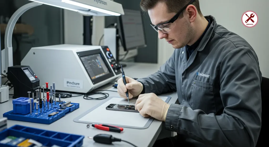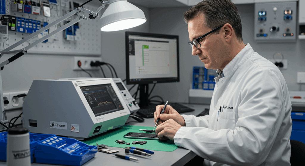 - Reparatur: Je nach Defekt öffnen wir das Gerät in unserer sterilen Werkstatt. Tools wie Schraubendreher, Heißluftföhn und Präzisionswerkzeuge kommen zum Einsatz. Alles ESD-sicher, um Schäden zu vermeiden.